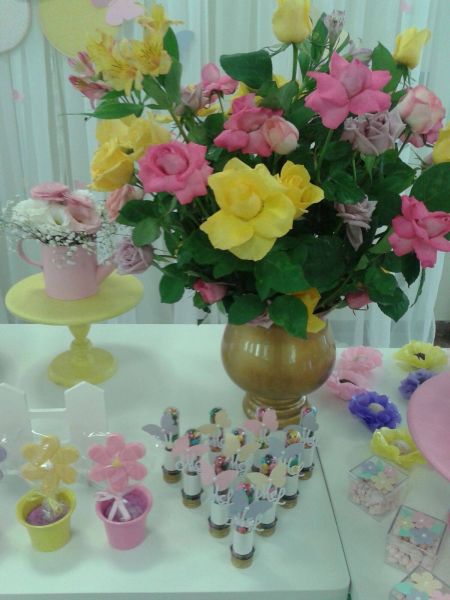 mesas com arranjo "chá de lingerie"